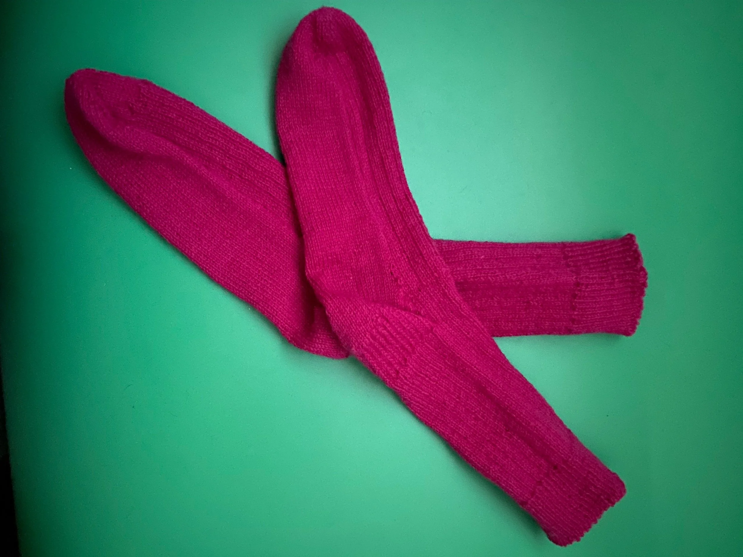 Size 6 Hand Knitted Socks in Cerise. 100% Wool. Hand Wash Only