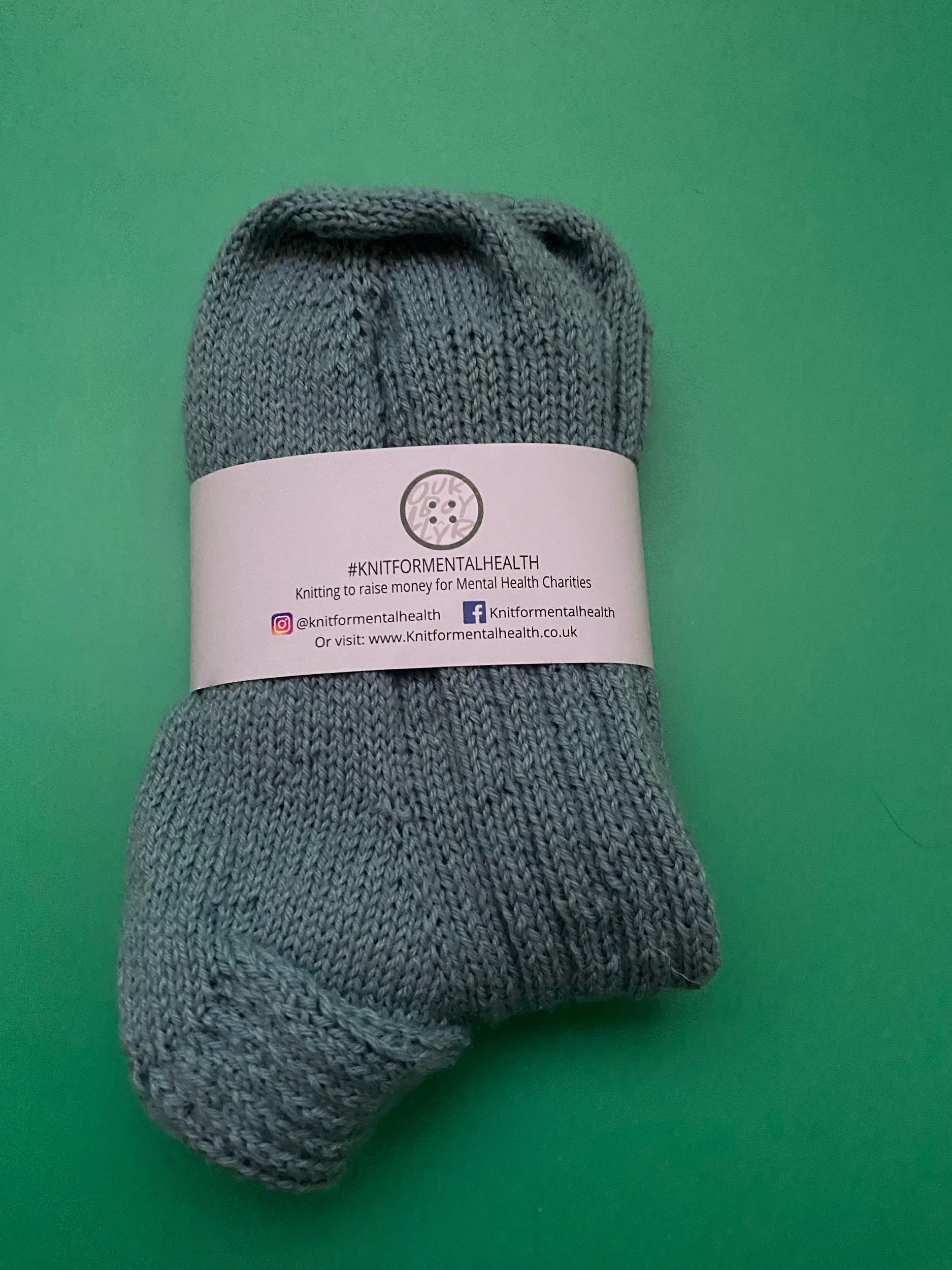 Size 5 Hand Knitted Socks In Pale Blue 50% Wool 50% Acrylic