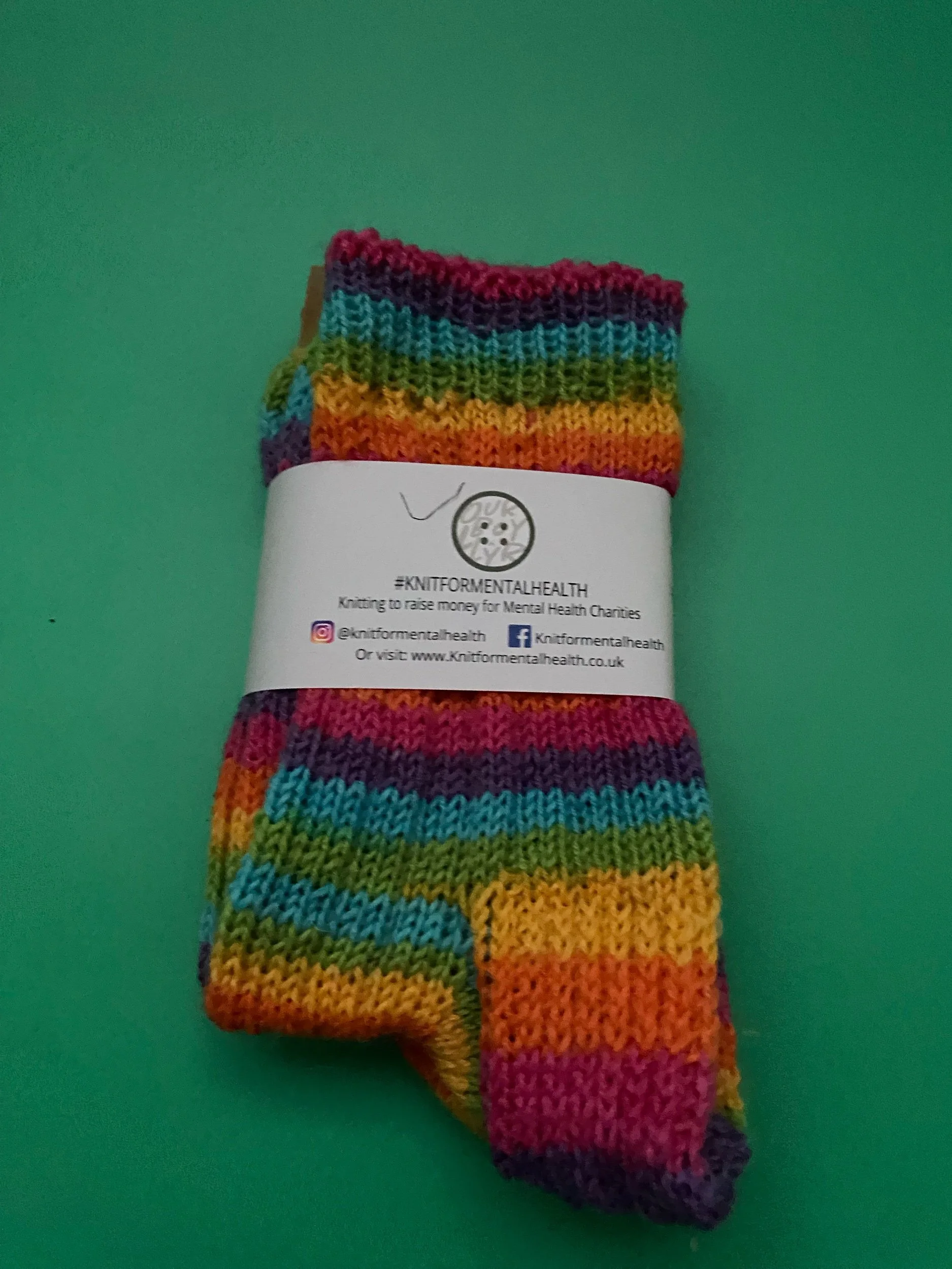 Size 4 Hand Knitted Socks In Rainbow Stripes. 100% Wool. Hand Wash Only