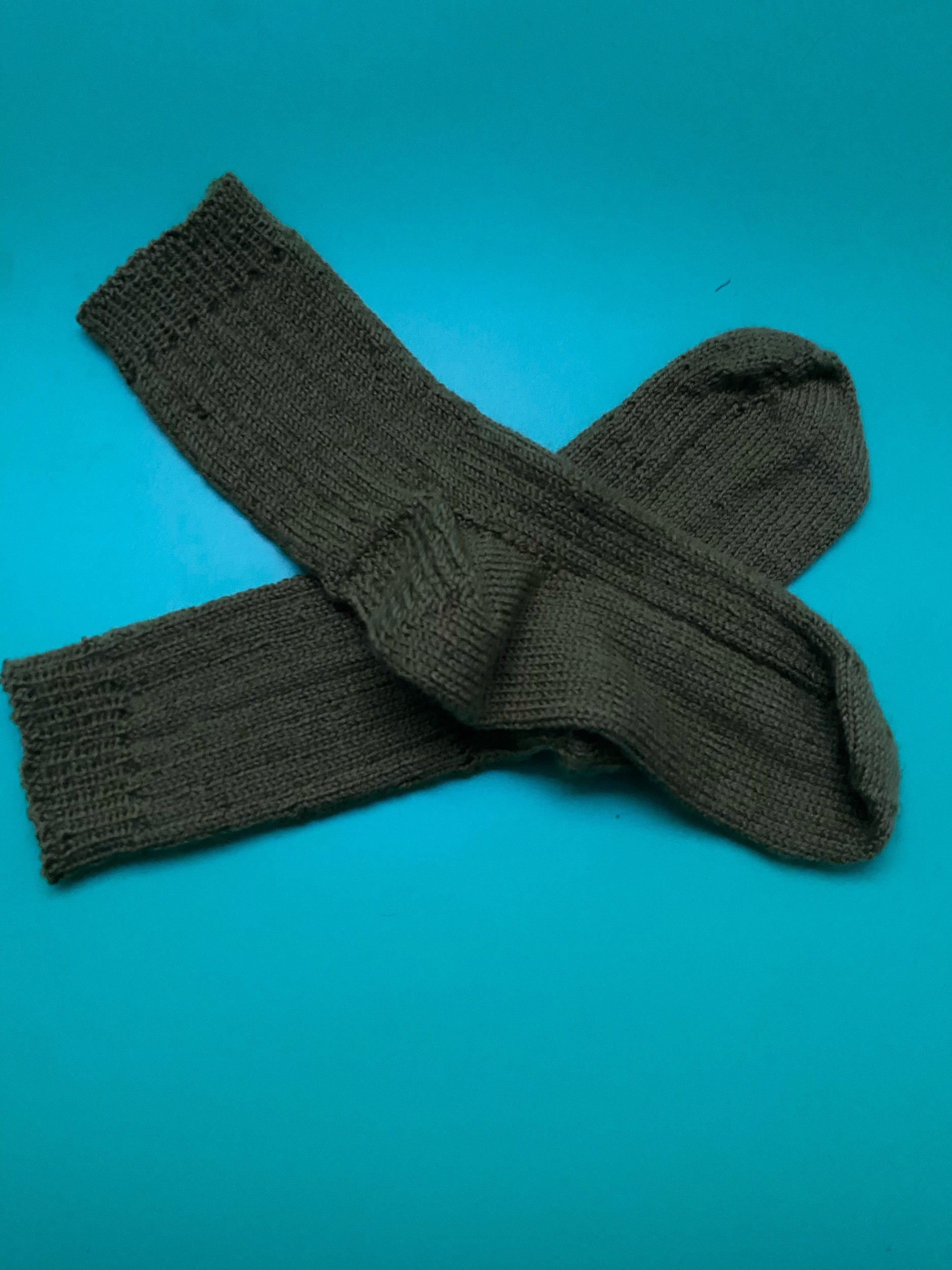 Size 4 Hand Knitted Socks in Kharki 75% Merino Wool 25% Nylon